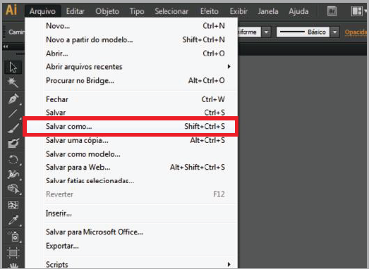 Após finalizar sua arte, vá em “Arquivo" e em seguida "Salvar como“