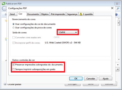 Em seguida selecione na aba "Cor" e faça as alterações conforme ilustrado na imagem abaixo