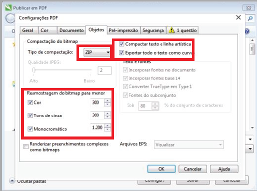 Em seguida selecione na aba "Objetos" e faça as alterações conforme ilustrado na imagem abaixo